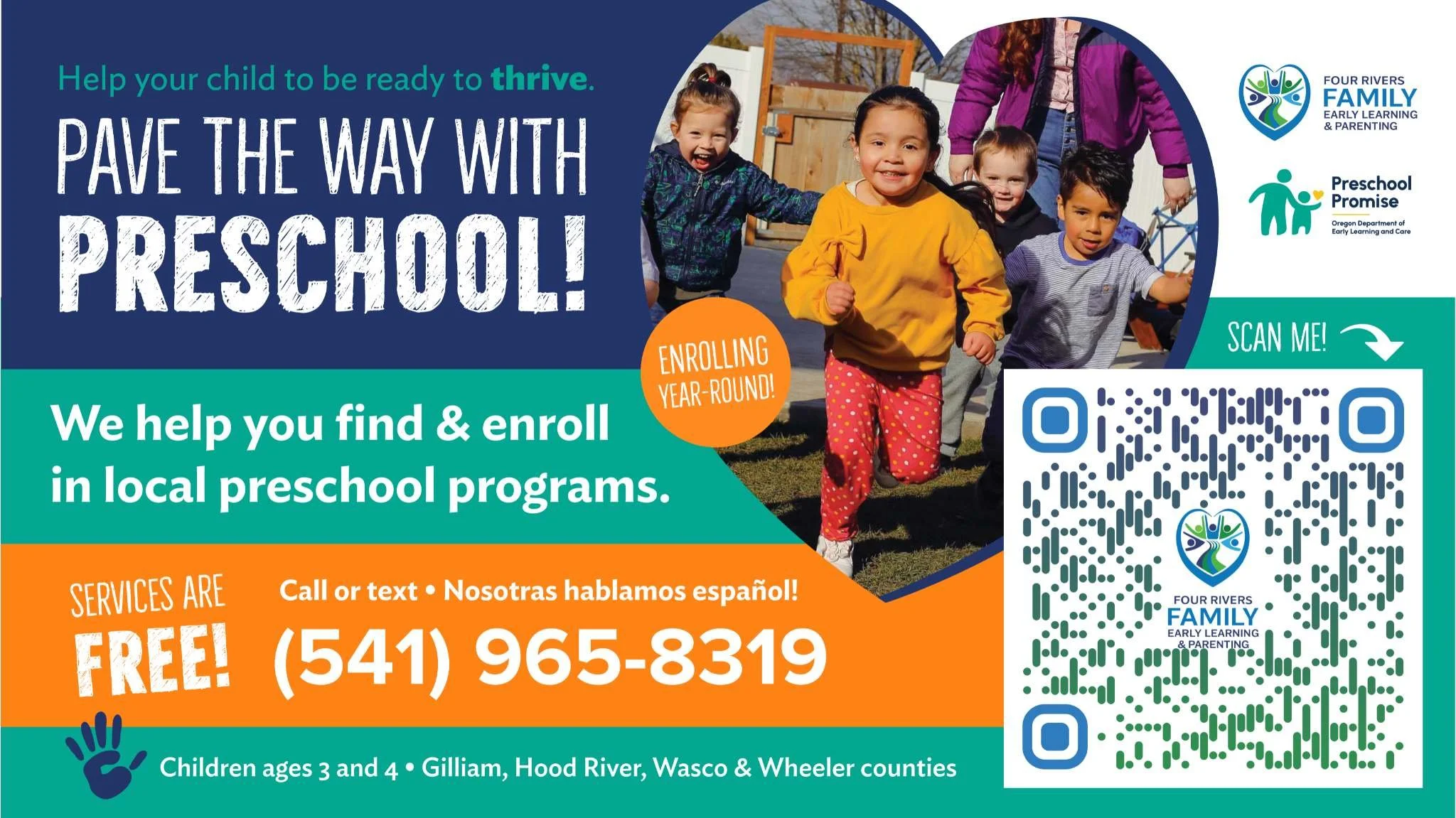 Children ages 3 and 4 living in Gilliam, Hood River, Sherman, Wasco & Wheeler counties. Our preschool connection services are designed to support families of all backgrounds, languages and income levels.